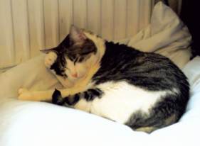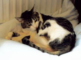 Oft putze ich mich mal am Kopf, mal die Pfoten. Danach muss ich viel gääähnen und schlaafen.
